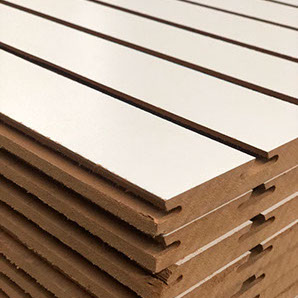 Tablero de fibras de densidad media que incorpora un práctico sistema de ranuras paralelas, recubierto en distintas variedades o sin recubrimiento para ser pintado.